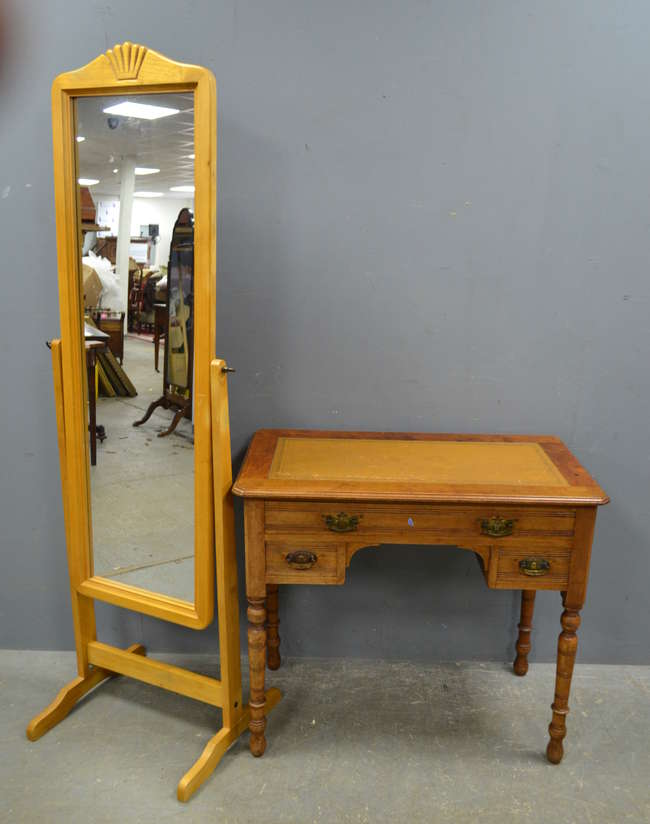 Edwardian walnut kneehole desk and a light walnut cheval mirror