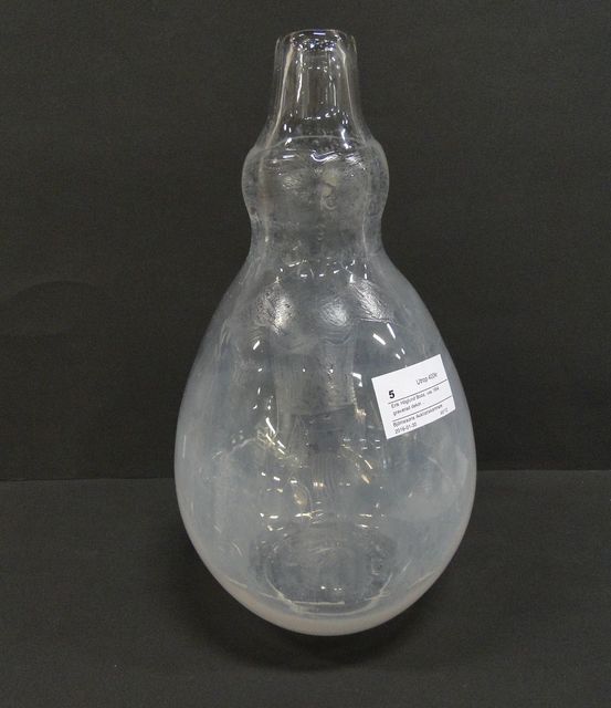 vas 1954, graverad dekor av kvinna till häst, H32cm, invändig beläggning