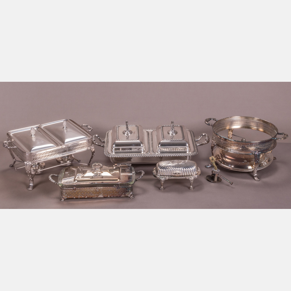 A Miscellaneous Collection of Five Silver Plated Serving Dishes