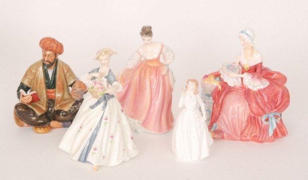 Four assorted Royal Doulton figures comprising Penelope HN1981, Omar Khayyam HN2247, Fair Lady HN2835 and Joy HN3875 (made for the Collectors Clubs) and a Royal Worcester figure Summers Day modelled by Freda Doughty (5)