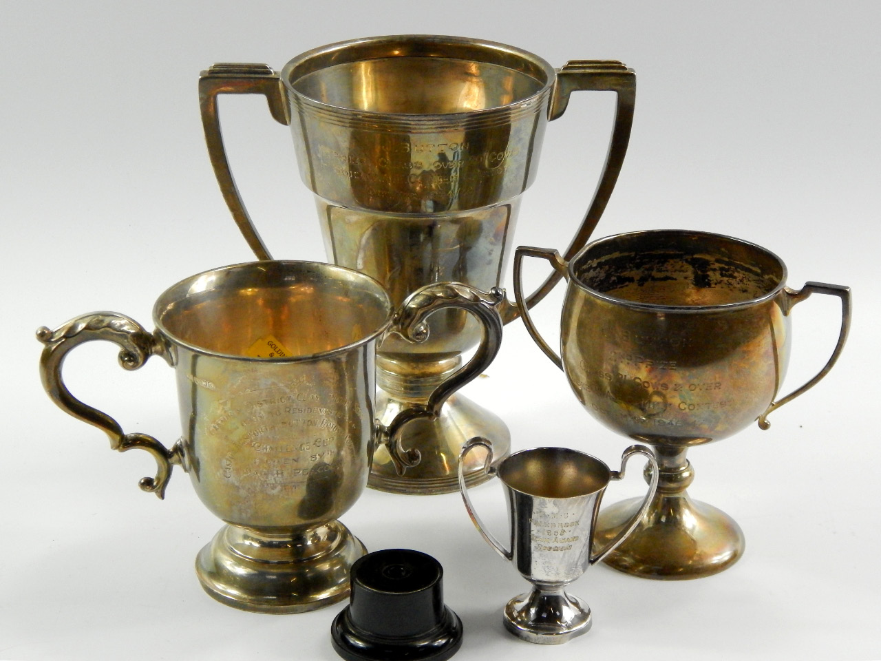 all presentation engraved, two for cow milking and one for the Castor & District Clay Pigeon Shoot, London 1947, Birmingham 1938 and Sheffield 1946, approx 16.64toz all in
