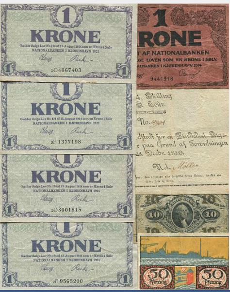 Frederik VI, 24 skilling 1810, No. 14934, Sieg 46, Pick A42 plus seven paper money, incl. USA, 10 cents
