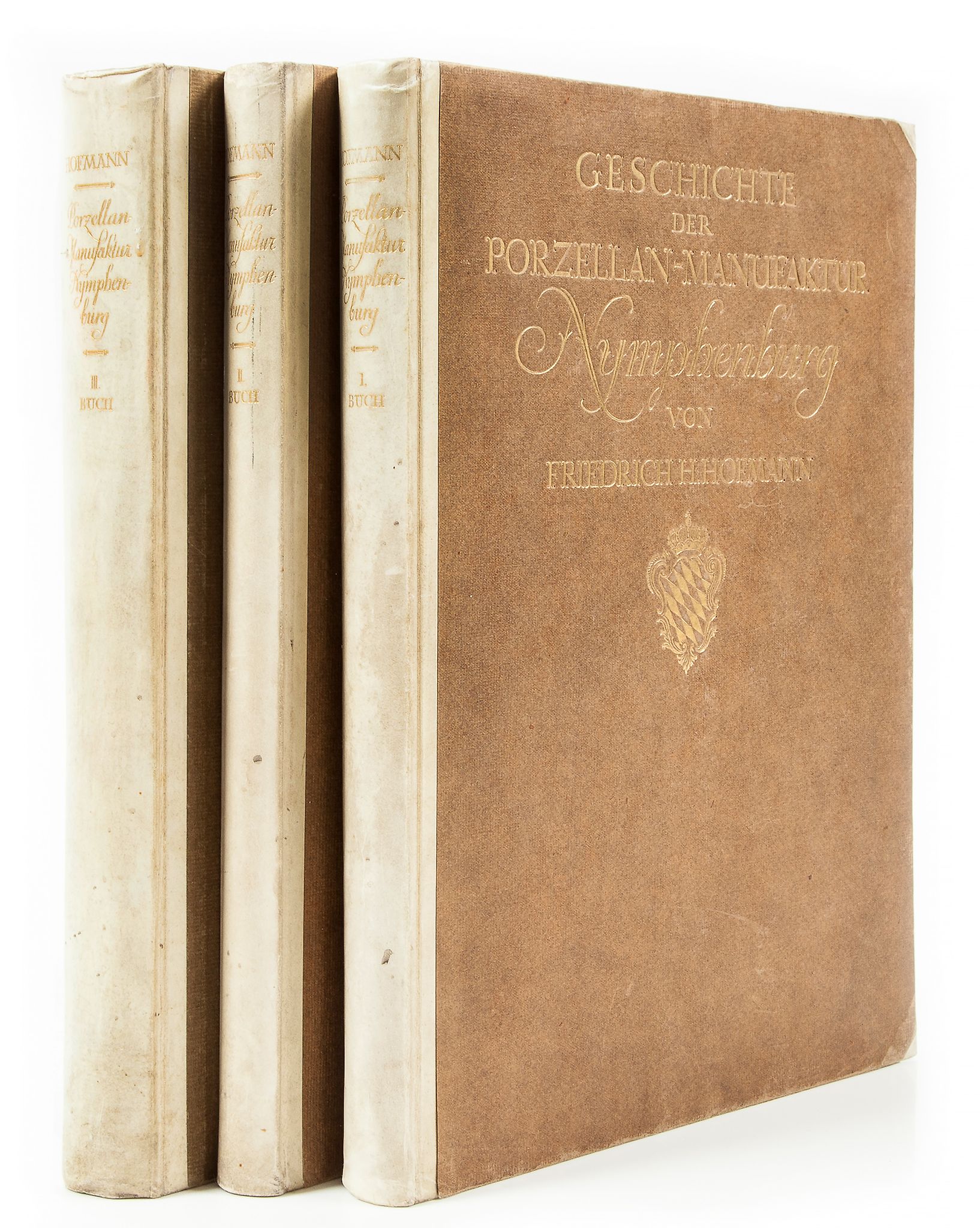 3 vol., mounted plates, some colour, illustrations, original half vellum, a little rubbed, Leipzig, 1921-23; and 8 others including 2 1950s sale catalogues of Nymphenburg figures by Bustelli, 4to & 8vo (11)