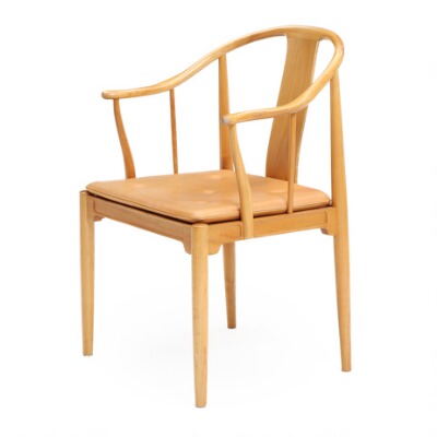 “China-Chair”. A cherry wood armchair, loose cushion with natural leather. Model 4283. Manufactured and marked with label by Fritz Hansen in 1980.