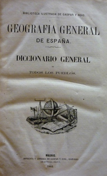 Diccionario general de todos los pueblos" M.: Imp. y librería de Gaspar y Roig, 1862. 4º, hol. lomo liso. 345 pgs. + 2 h