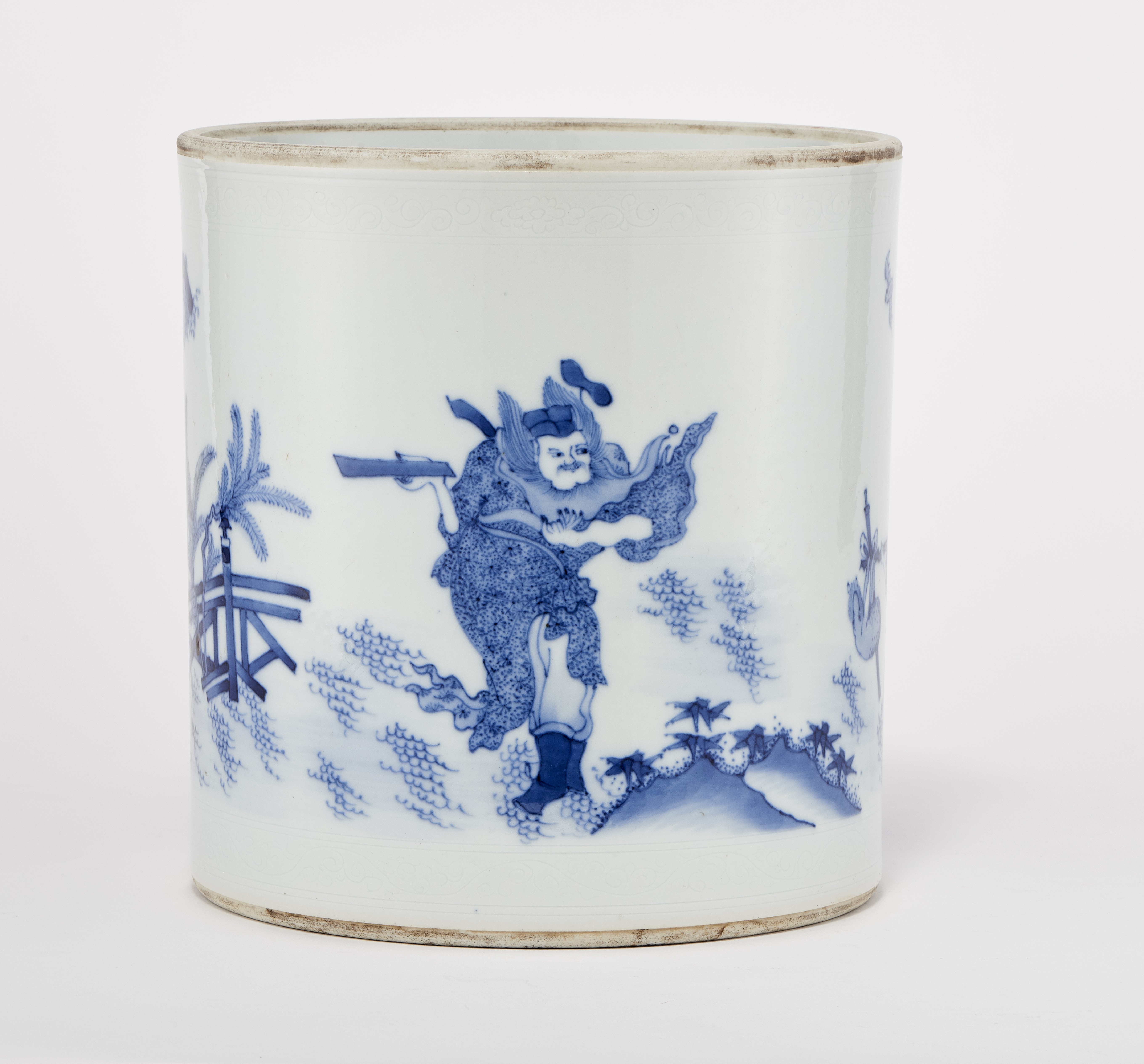 Enameled blue white porcelain decorated with a hermit and deer