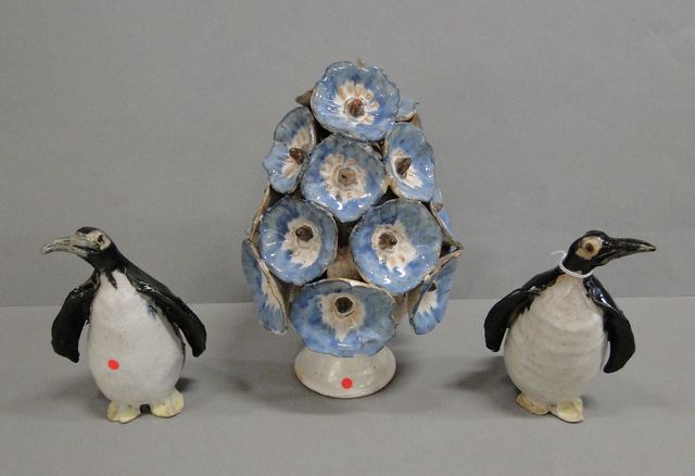 ljuslykta H25cm, nagg samt 2st pingviner H16cm