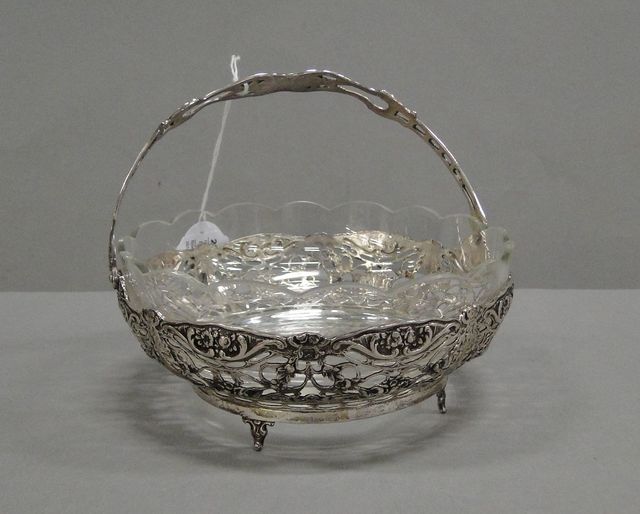 Hänkelskål med glasinsats, H15cm D16cm, vikt utan glas 213g, glasinsats möjligen ej original