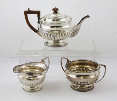 HARRY FREEMAN A THREE PIECE SILVER TEASET, each having gadroon rim and demi reeded lower belly on pedestal foot