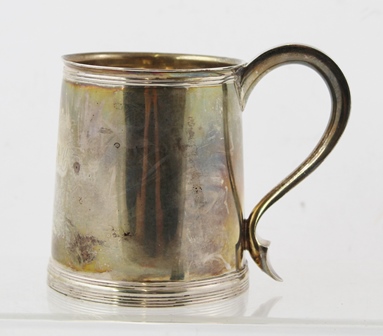 JAMES DIXON & SONS LTD A GEORGIAN DESIGN SILVER TANKARD having scrolling handle and engraved initials, Sheffield 1925, weight 426g