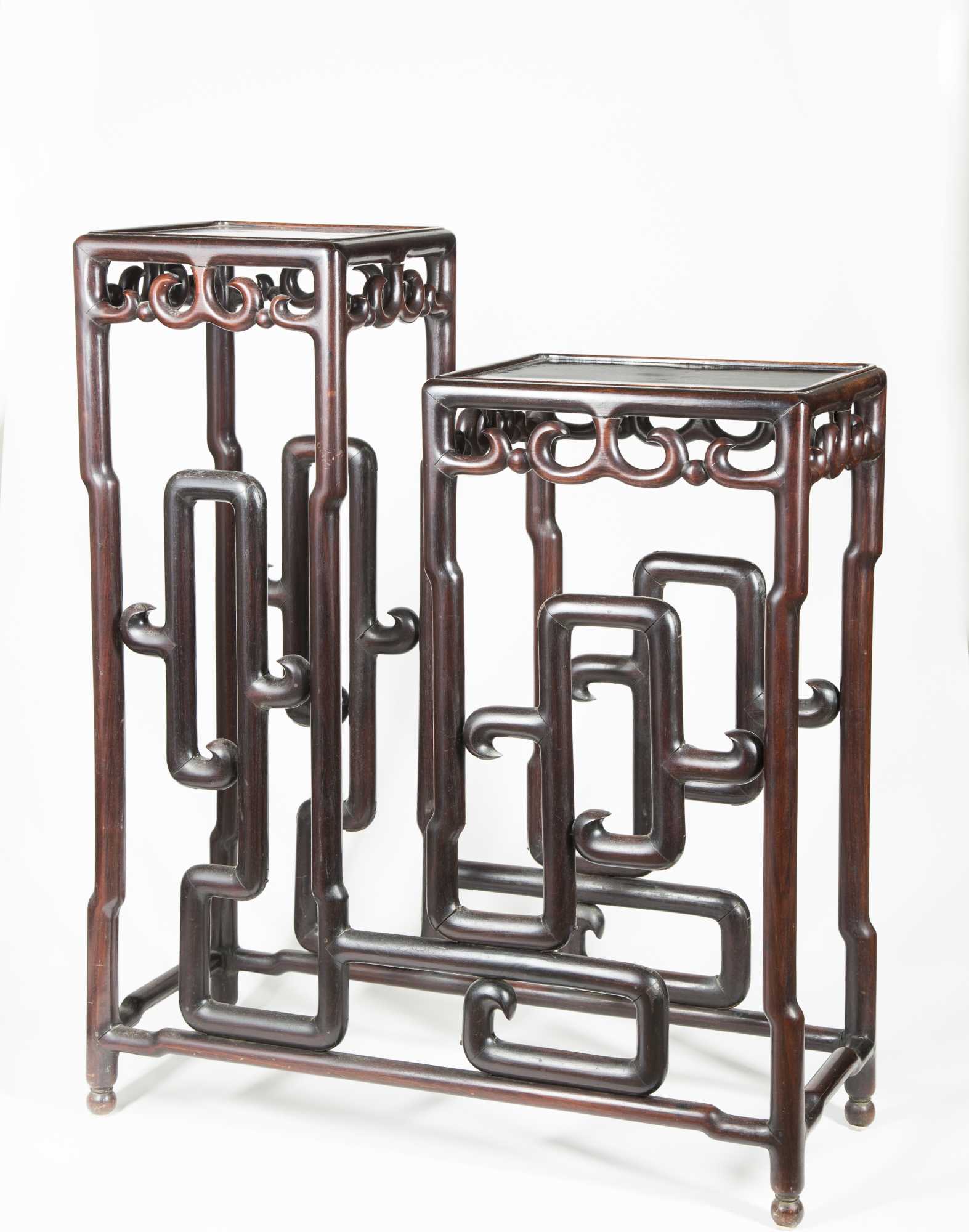 an unusual hardwood form with a stretcher base and two separately supported stand tops