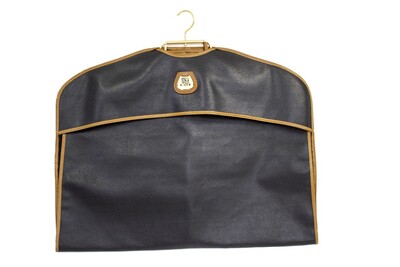 Black grained canvas with light brown edging, hanger and handle