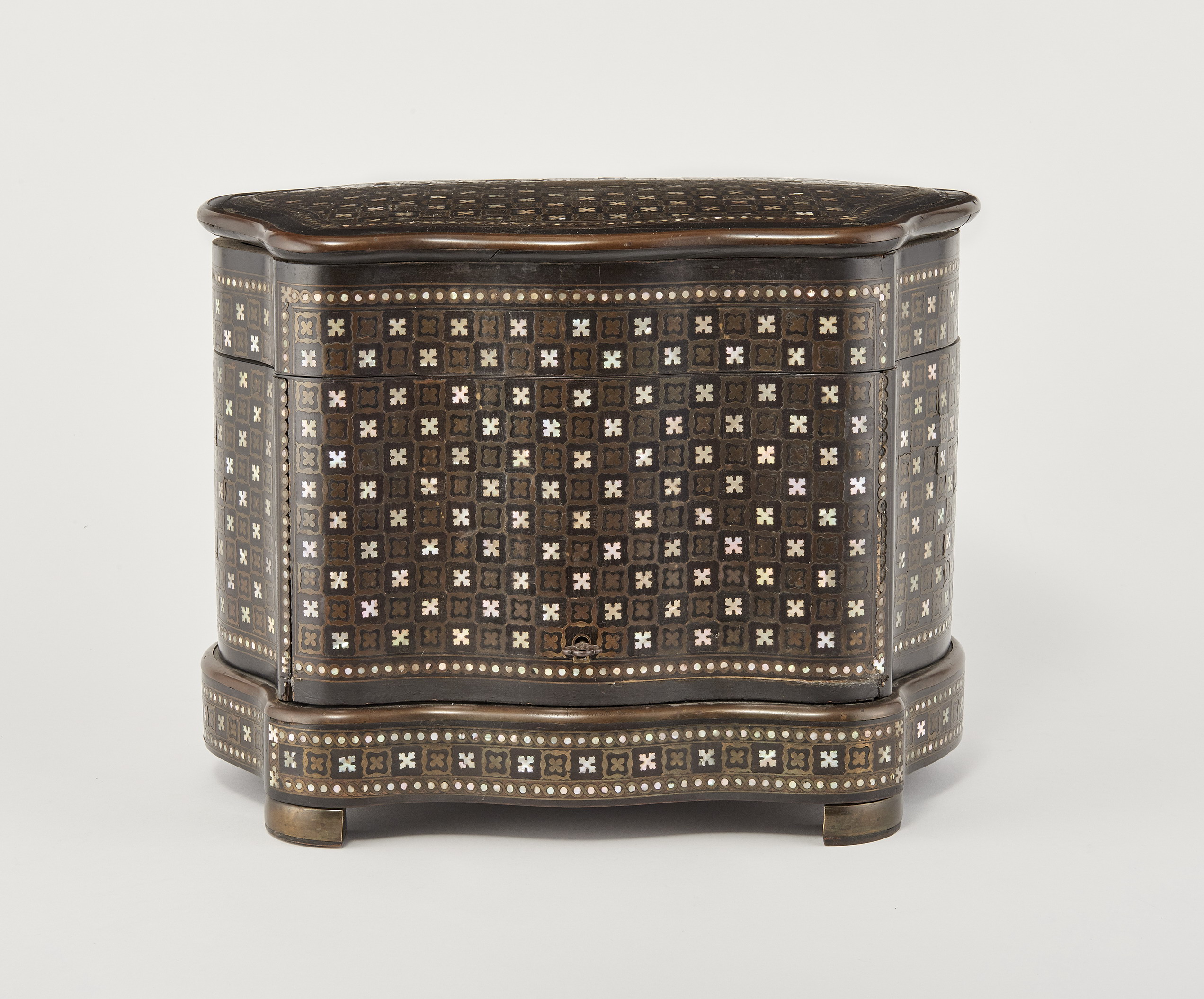 Blackened wood and mother-of-pearl inlays, 30x37x27 cm
