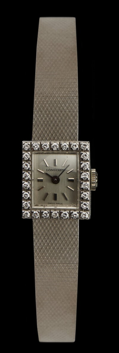 Gray dial, black baton hands and hour markers, 750 white gold, 17x15 mm, gross weight 41 g