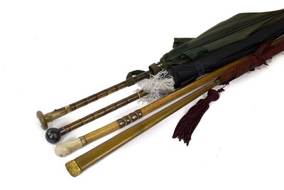 Circa 1900, wood, brass, bone and horn, L from 87 to 105 cm