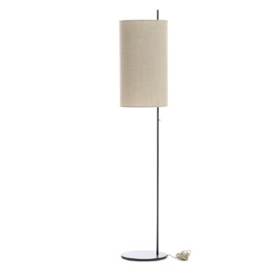 • “AJ Royal”. Floor lamp with greylacquered metal frame, sand-coloured canvas shade