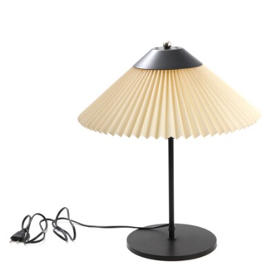 A black lacquered metal table lamp mounted with white pleated acryllic shade. Manufactured and marked by Lyskær Belysning. H. 50 cm.