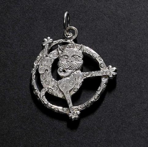 Double sided, each designed as an abstracted cat, one of which with its tongue out, length including bales 50mm, signed 'M.Appleby' with the 'E' reversed