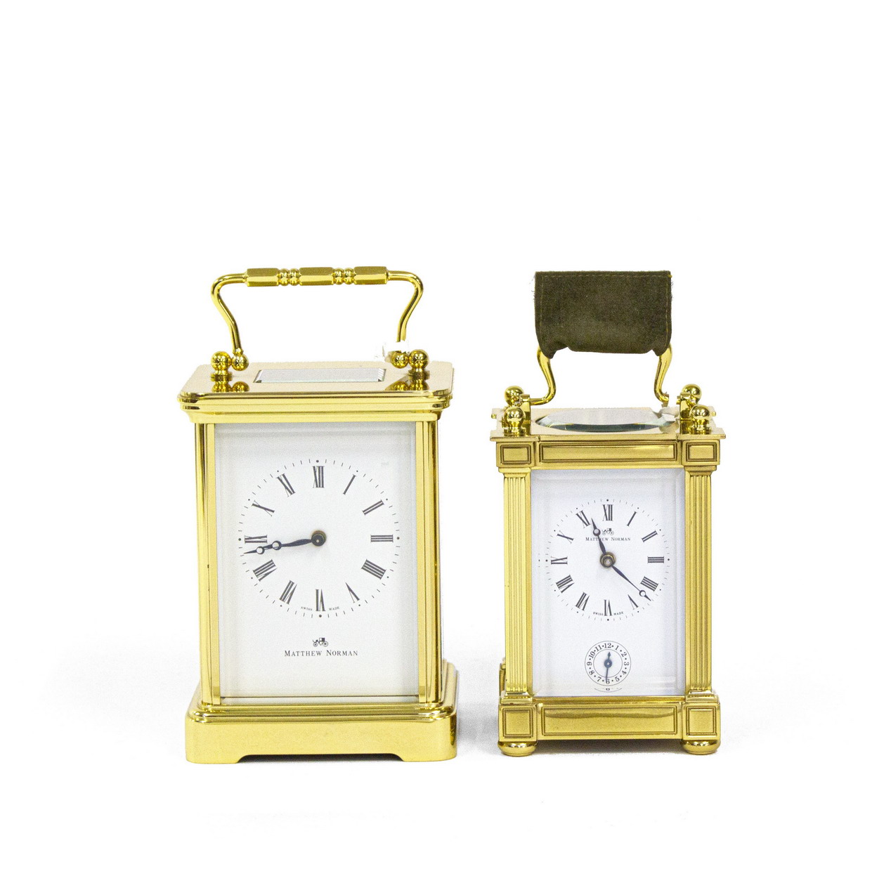 White dials, hands and black Roman numerals, gilded metal, H 13 and 13.5 cm