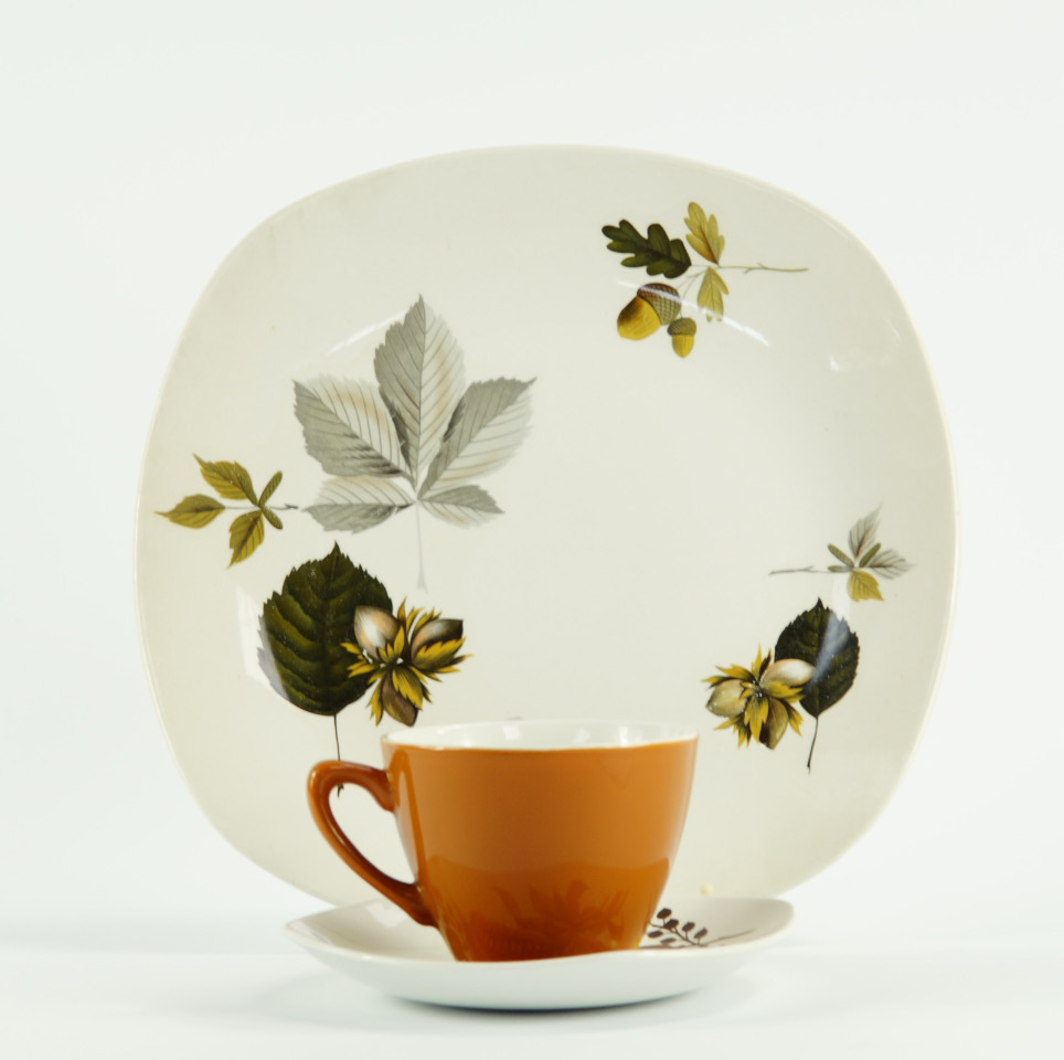 fashion shape, decorated in the Nuts in May, Cornfield, and Riverside patterns, (54)