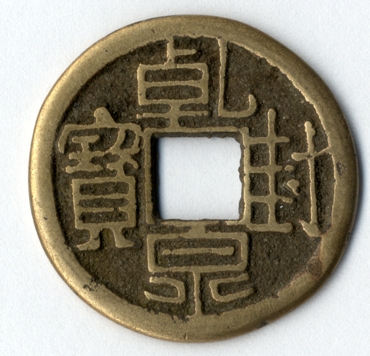 Období Pěti dynastií a Deseti království (907 – 960), revers nápis: Tien Fu. Průměr 3,7 cm, 12,54 g
