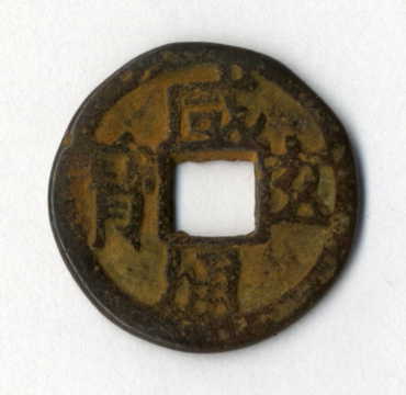 Dynastie Tchang (618 – 907 n.l.). Průměr 2,1 cm, 3,07 g