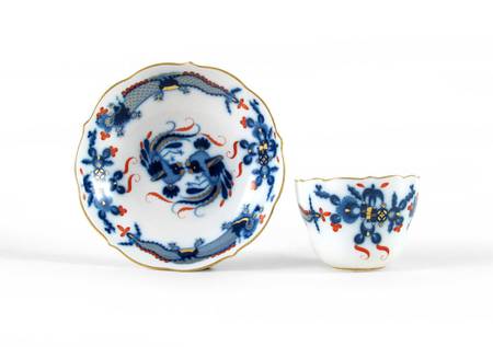 Underglaze blue dragon decor with coral red and gold. Blue swords Meissen, 19th century.
