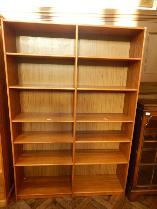 Modern hardwood bookcase of twelve open shelves