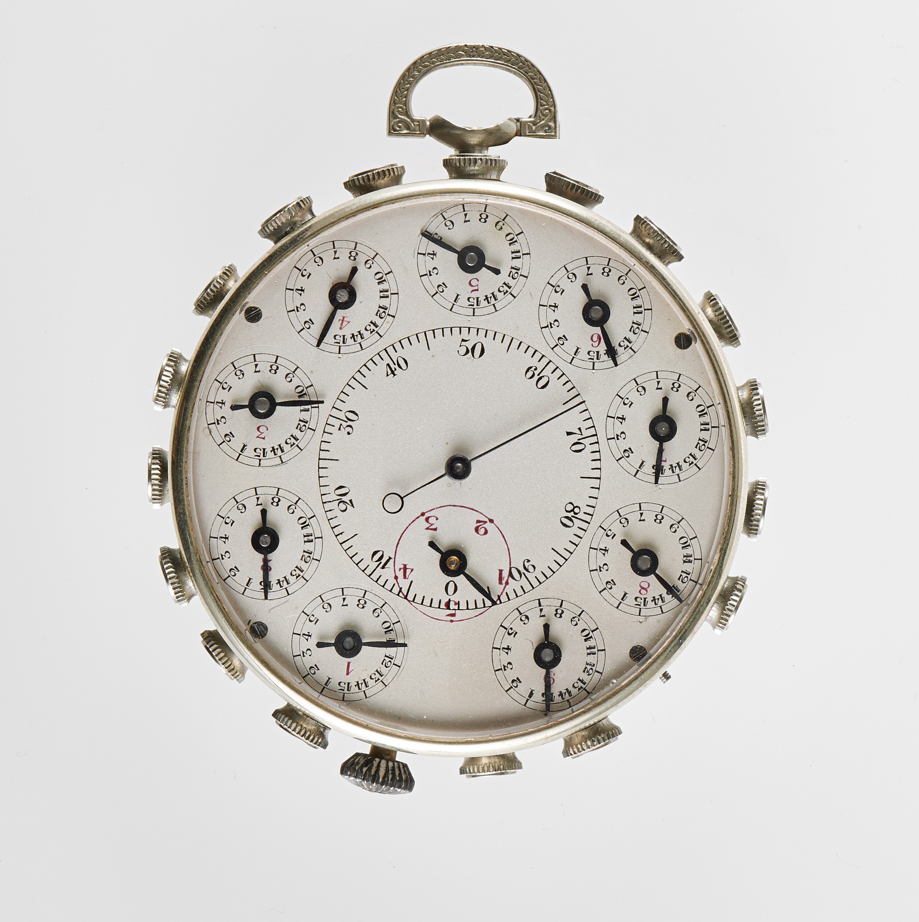 Gray dial, blue hands and black Arabic numerals, metal, D 5.5 cm