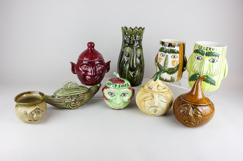 Nine pieces of pretty ugly Price and other pottery including two pickled onions, a beetroot, an apple sauce and a cucumber