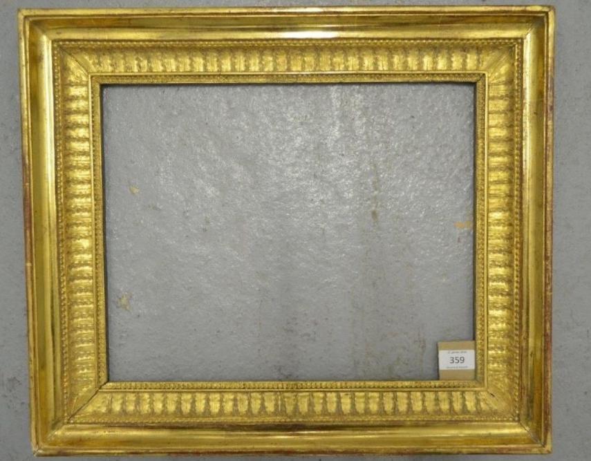 Oak frame moldings and gilded stucco to pearl decoration, frieze of laurel leaves and heart at the sight spokes