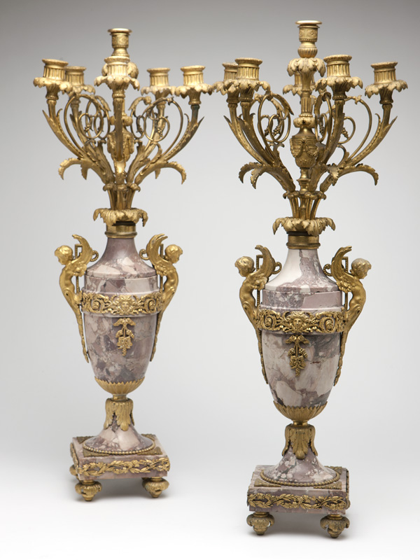 Pair of French gilt-bronze and marble candelabra, Late 19th/early 20th century