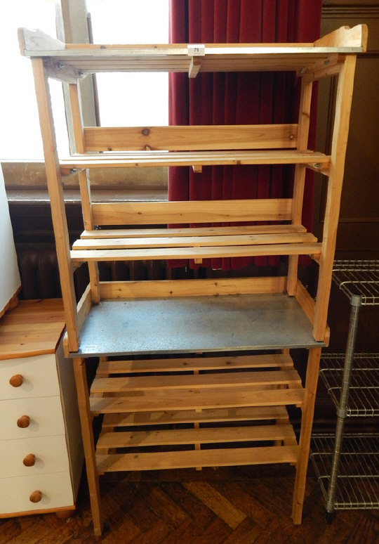 with two open racks below, on square legs, width 78cm together with metal wire three-shelf rack