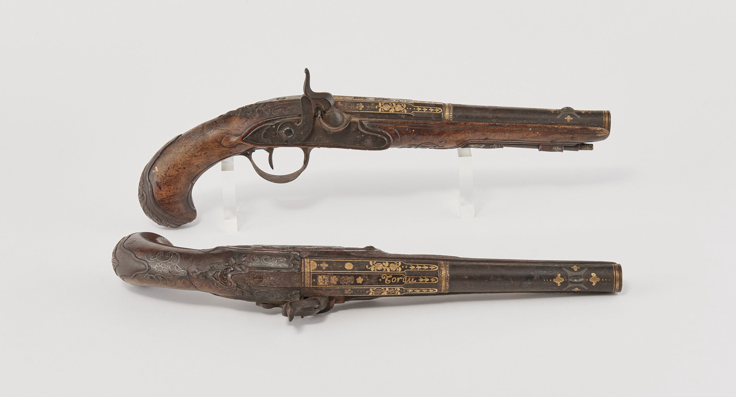 Pair of pistols, eighteenth century (transformed with percussion posteriorly)