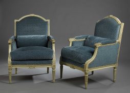 Paire de bergères, estampillées J.Nadal. Laine, époque Louis XVI
