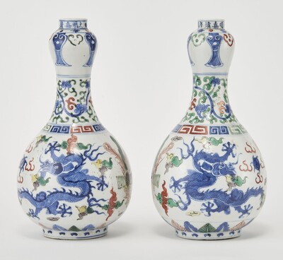 Paire de vases bouteille, Chine, dynastie Qing (1644-1912), marque Wanli apocryphe