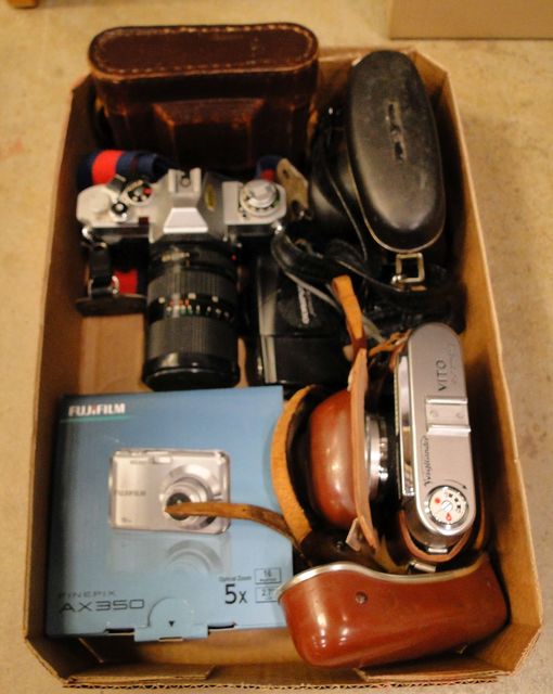 Parti kameror bl.a. Canon AV-1, Olympus, Fuji film, m.m., för funktionen ansvaras ej