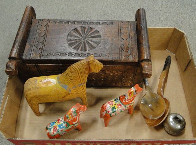 Parti ostform 1800-tal, 3st dalahästar, slitage m.m.