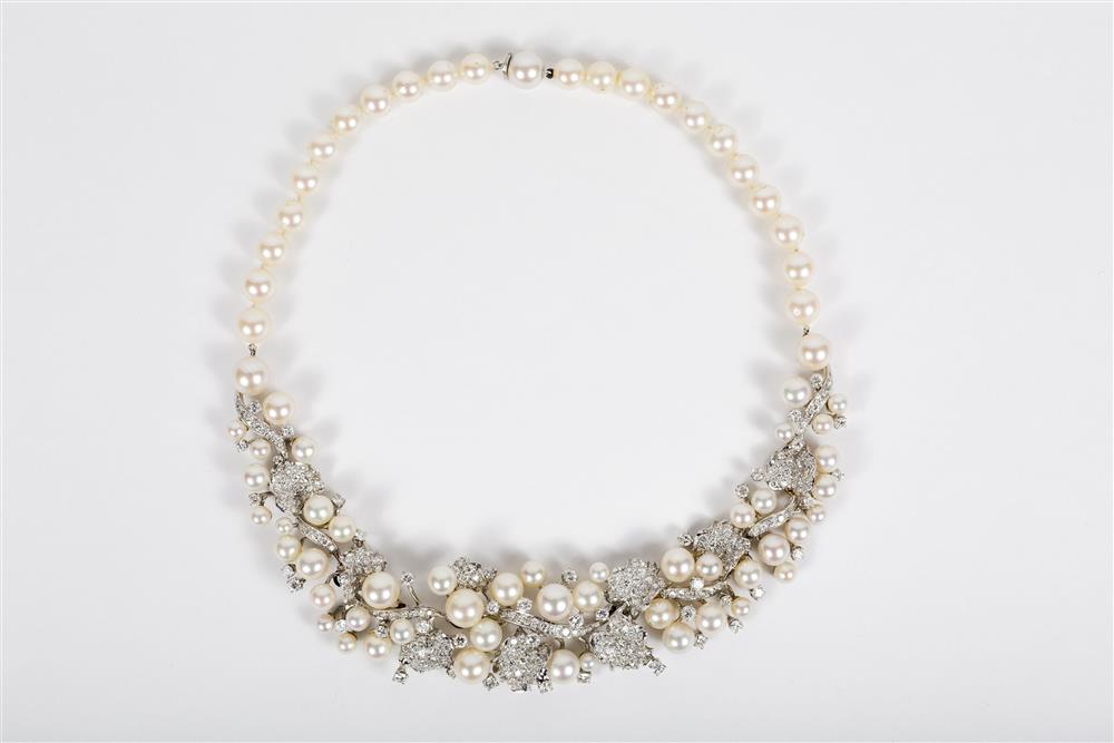 PLATINUM, DIAMOND, AND CULTURED PEARL NECKLACE