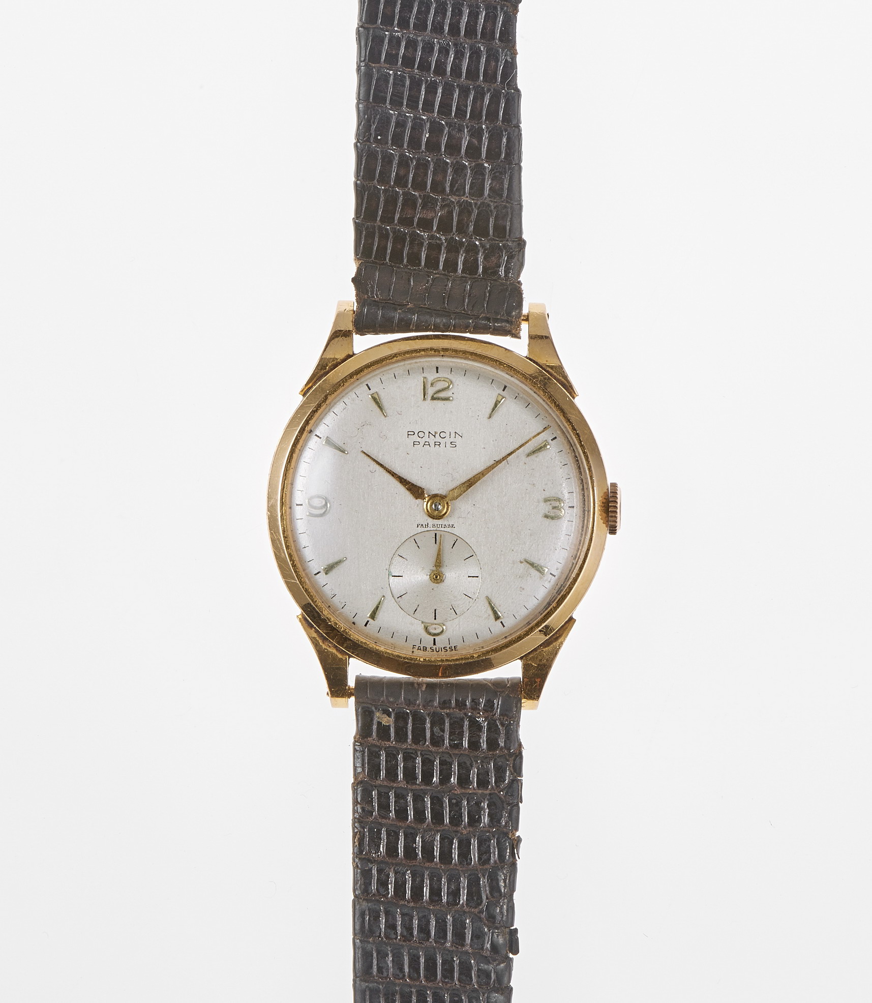 Gray dial, hands and Arabic numerals, seconds at 6 o'clock, gold 750, D 31 mm, gross weight 29 g