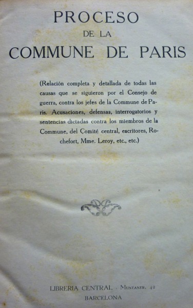 (Relación completa y detallada de todas las causas que se siguieron por el Consejo de guerra, contra los jefes de la Commune de París. Acusaciones, defensas, interrogatorios y sentencias dictadas contra los miembros de la Commune, del Comité central,