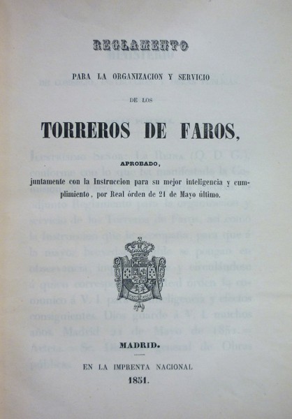 Approved the lighthouse keepers, along with instructions for better understanding and compliance by Royal Order of May 21 last. M .: Imp. Nacional, 1851. 8, cub. IX + 74 pgs