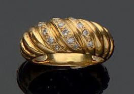 Ring finger fluted decoration of yellow gold, 750 MM, decorated with bright, size: 44, weight: 5,14gr. gross
