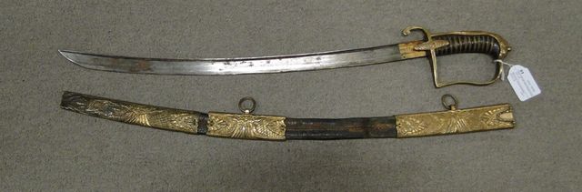 Sabel 1800-tal, delvis förgylld klinga, balja med skador