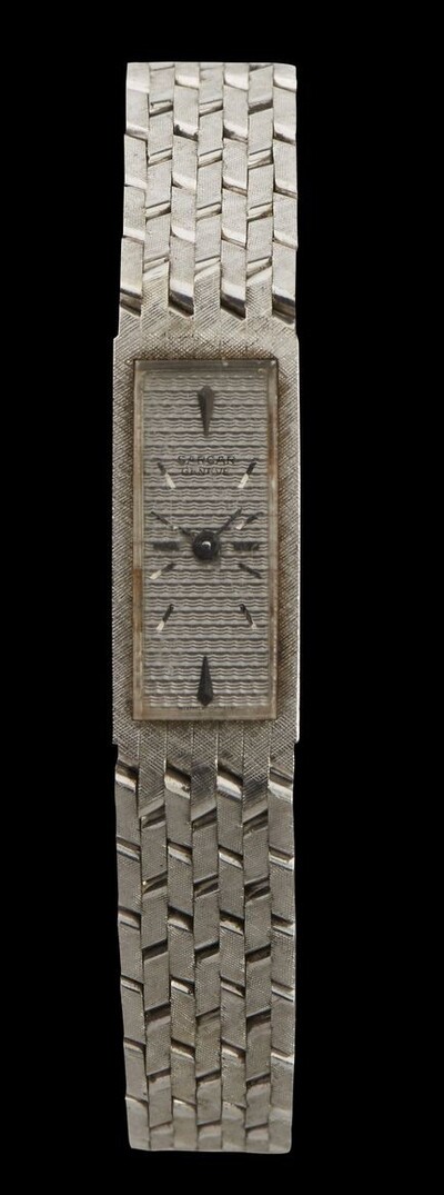 Silver dial, hands and black baton indexes, 750 white gold, 21x11 mm, L 17.5 cm, gross weight 39 g