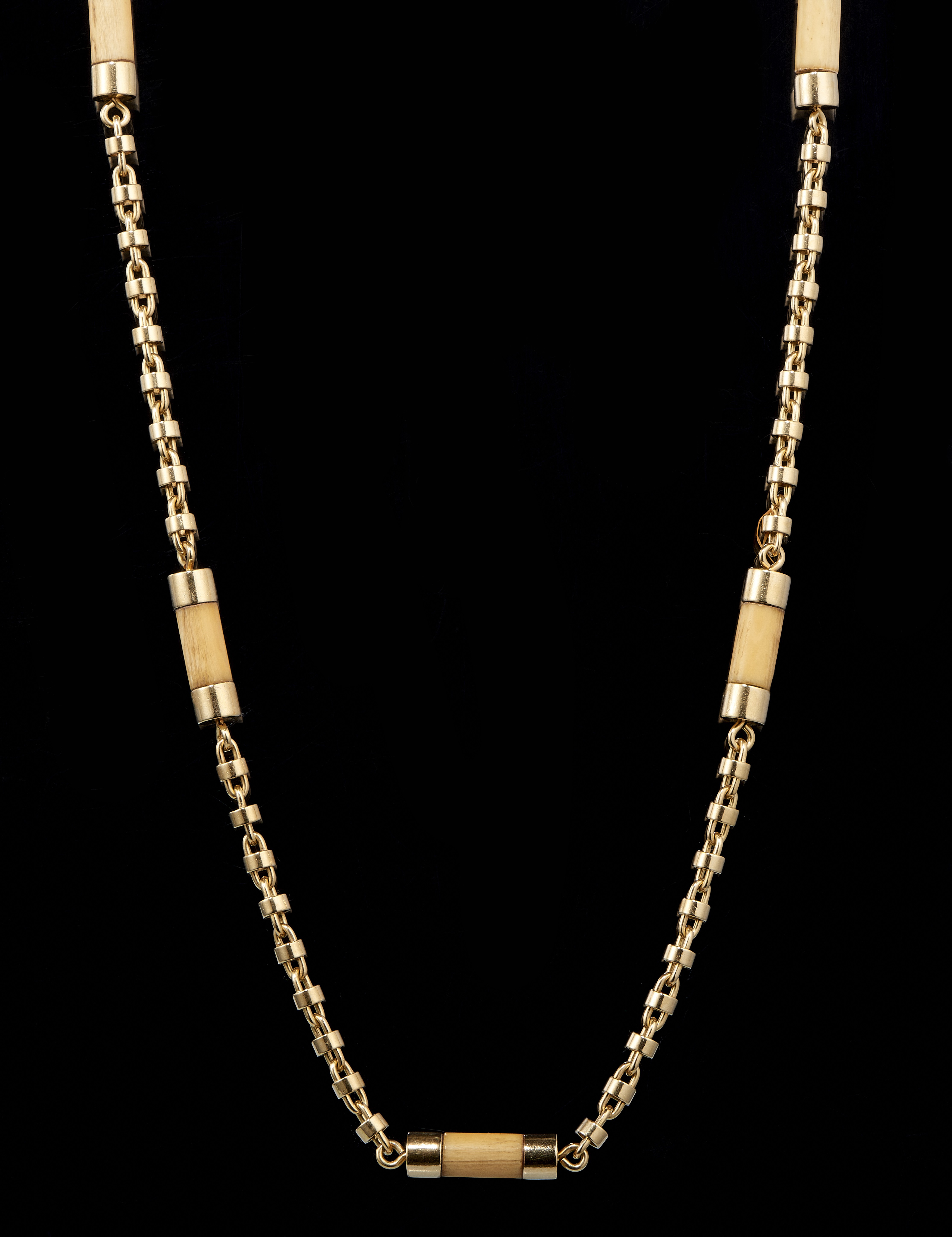 Sautoir orné de motifs en ivoire Or 750, L 82 cm, poids brut 63 g