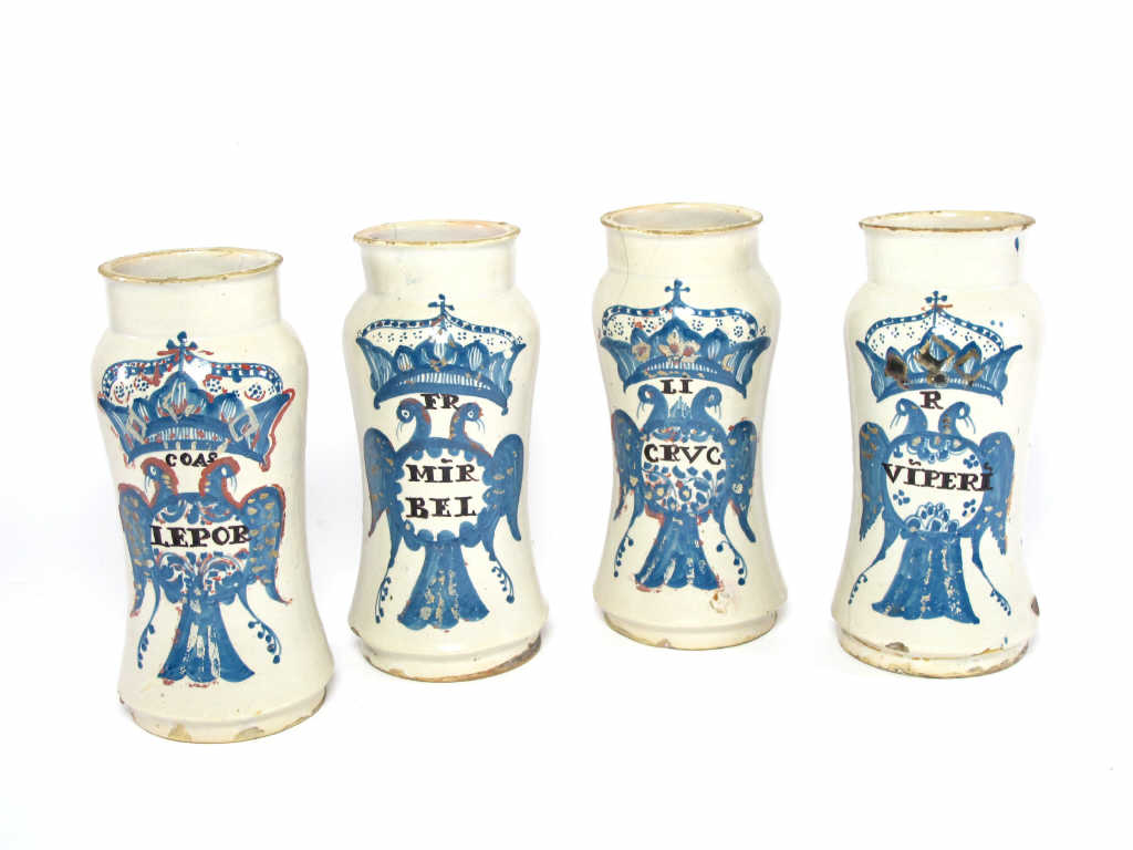 Sevilla Four earthenware pharmacy jars