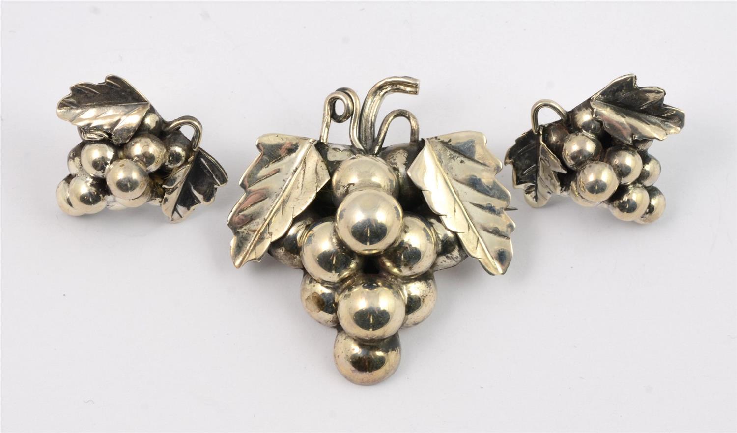 Silver Brooch and Earring Set, Taxco grapes motif with pierced earrings, pin measures 1-1/2 long, 0.42 TO