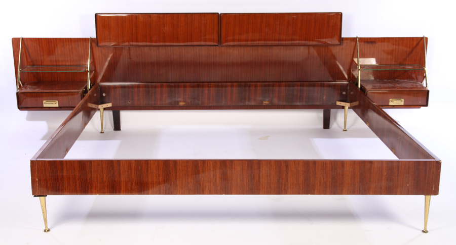 An Italian rosewood queen size bed with matching nightstands