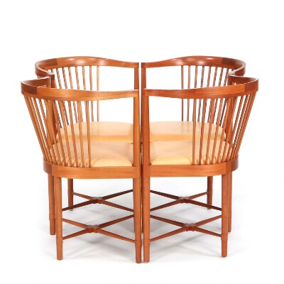“King of Diamonds”. Set of four mahogany chairsk, seat upholstered with patinated light leather. Designed 1944